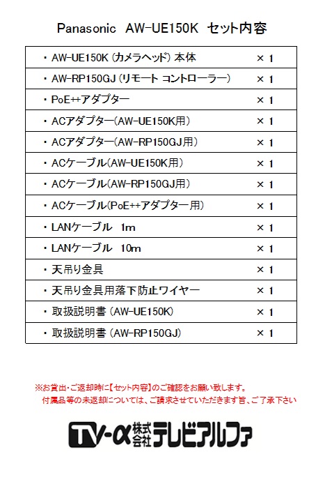 Home > 放送機器レンタル >カメラ/CCU/カメラリモコン > AW-UE150K(Panasonic)