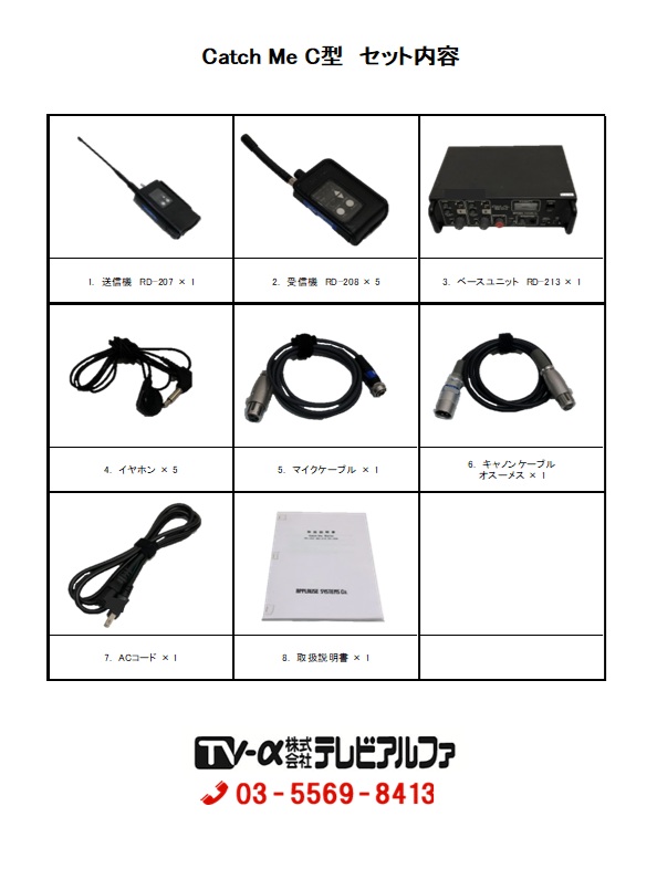 送信機(RD-207)×1、受信機(RD-208)×5、ミキサー(RD-213)のセットです。
